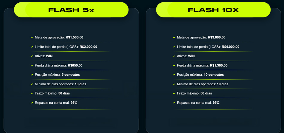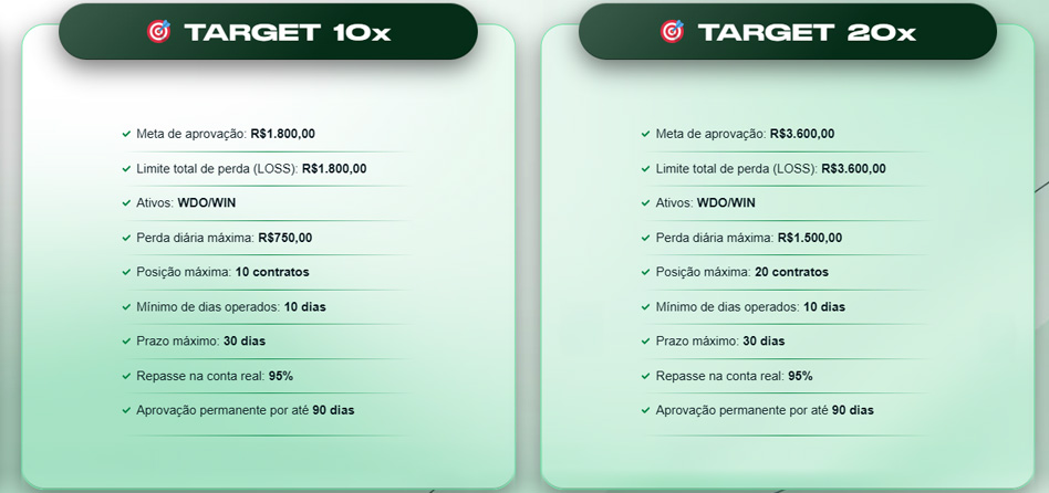 Uma vez aprovado, não haverá mais meta de avaliação, passando o trader a administrar seu saldo positivo dentro das regras operacionais vigentes da mesa.